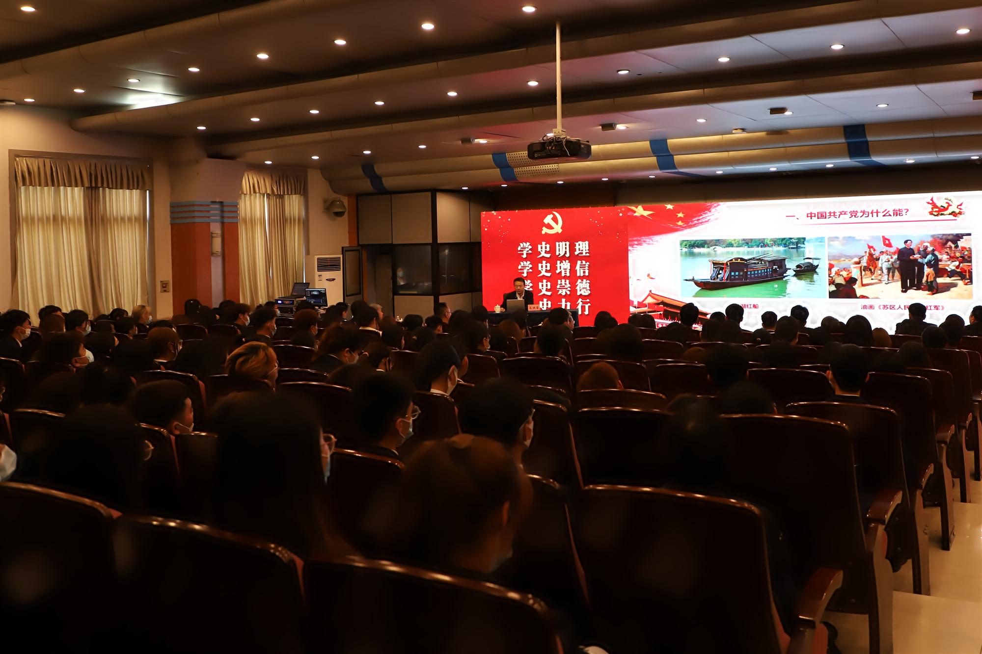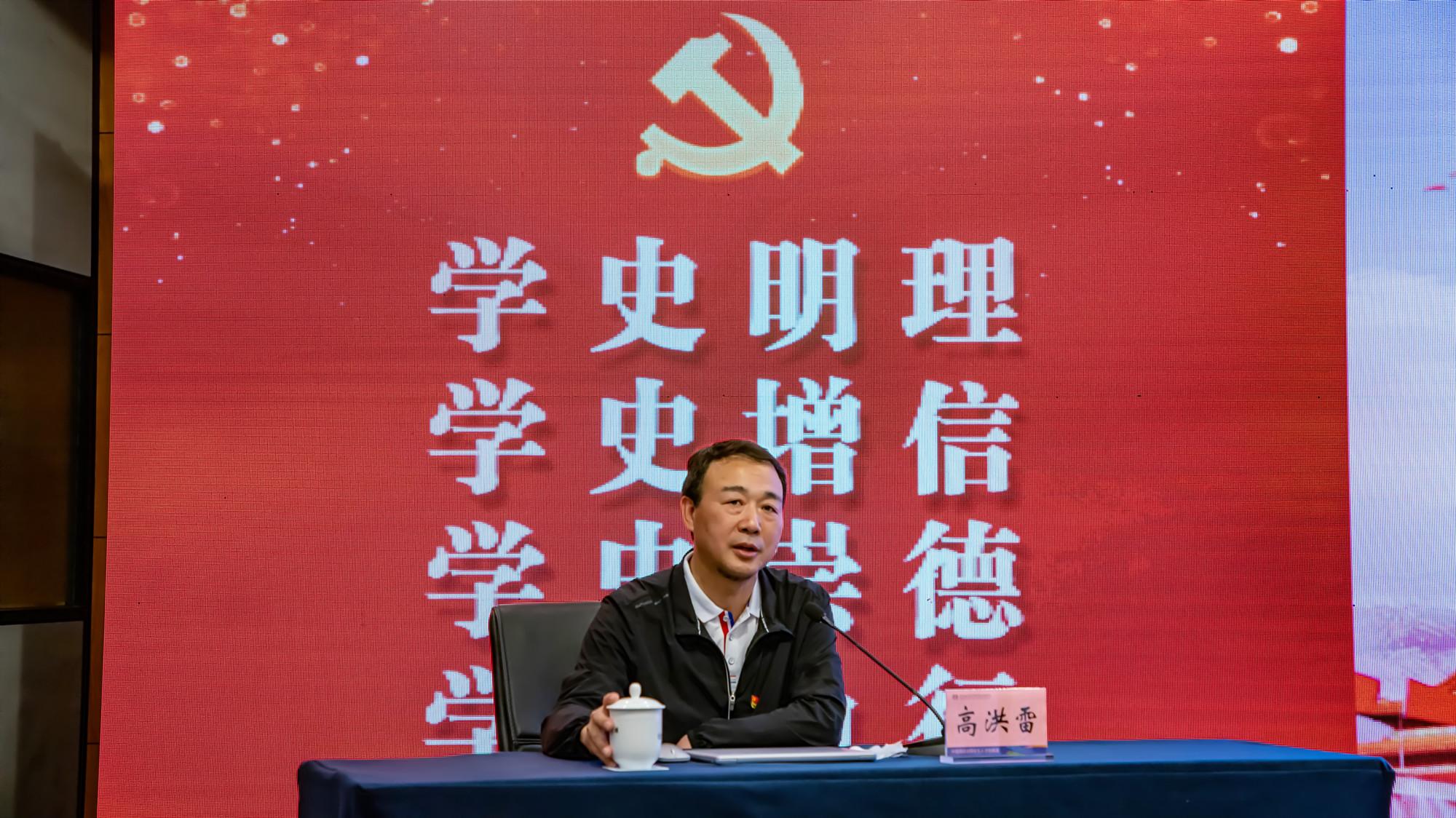 高洪雷结合党史故事,通过重大事件、重要人物回顾了中国共产党百年奋斗的光辉历程和历史性贡献,诠释了共产党人的革命理想和初心使命。他表示,一要弄清楚中国共产党为什么“能”。二要弄清楚中国特色社会主义为什么“好”。历史和实践证明,只有社会主义才能救中国,只有中国特色社会主义才能发展中国。三要弄清楚“为什么讲团结统一”。增强“四个意识”,坚定“四个自信”,做到“两个维护”,是我们党和国家从胜利走向胜利的重要保证。四要弄清楚“为什么要保持纯洁”。要拧紧总开关,划好人生底线,做到慎独、慎初。五要弄清楚“为什么要有精神”。人有了精神,就有了追求,有了动力,有了灵魂,有了脊梁骨,就有骨气、志气、勇气;没有精神,就没有追求,就会失去动力,就等于得了软骨病,缺什么都不能缺精神。