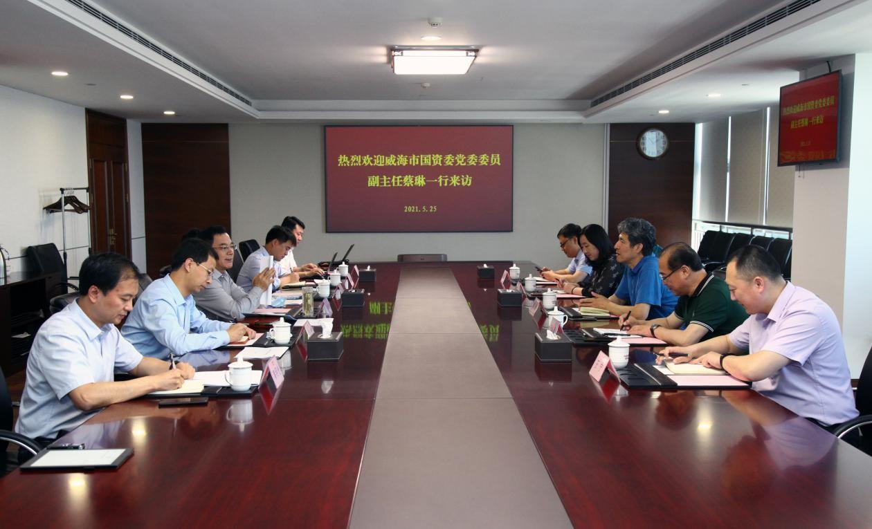 5月25日,鲁商集团党委副书记、总经理郭训成,在济南会见来访的威海市国资委党委委员、副主任蔡琳一行。集团外部董事、财务总监王远良,荣成经济开发区管委会主任王志勇出席活动。