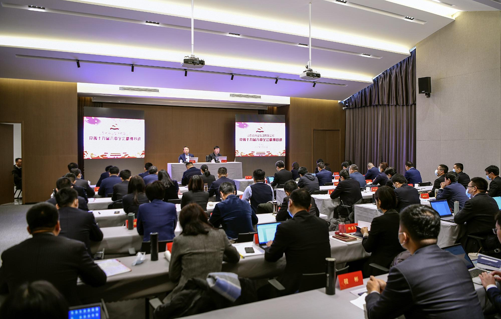 12月26日,鲁商集团党委在省乡村振兴齐鲁样板研究院莱芜分院举办党的十九届六中全会精神宣讲报告会,集团党委书记、董事长兼国欣文旅董事长高洪雷作宣讲报告,集团党委常委、董事、组织人力资源部部长李林主持。