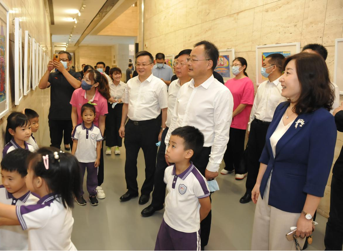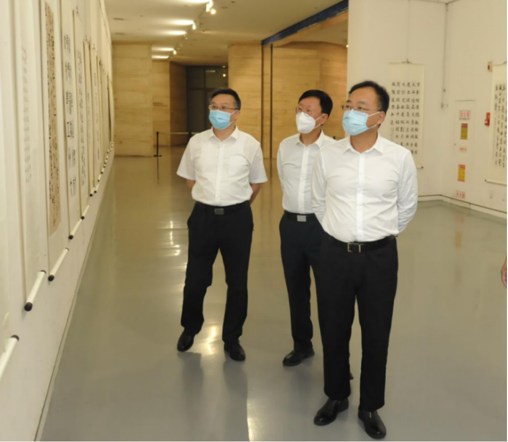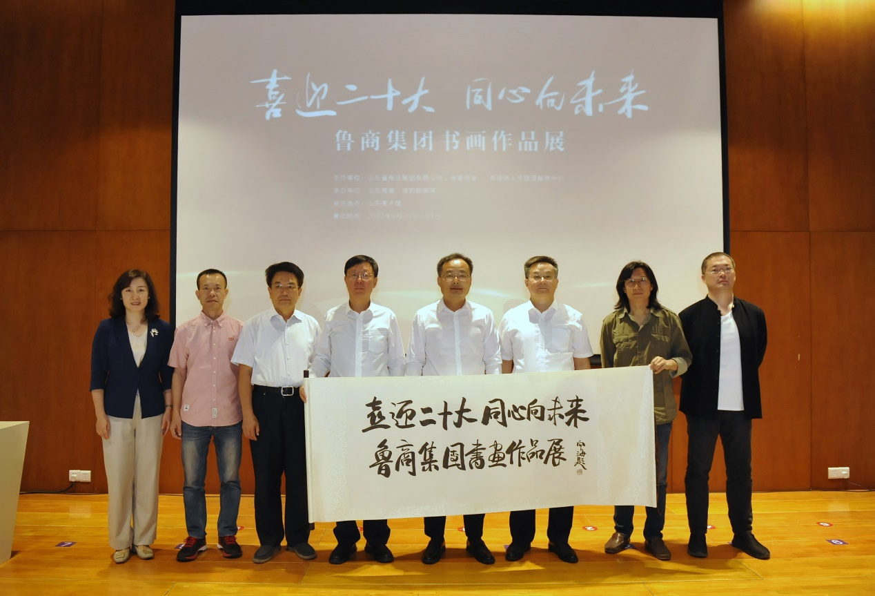 9月20日上午,鲁商集团“喜迎二十大 同心向未来”书画作品展在山东美术馆启幕。集团党委书记、董事长王绪超,党委常委、董事、组织人力资源部部长李林,党委常委、董事、总审计师、工会主席刘德华,省美术家协会副主席李平,理事、副秘书长孙万灵、樊磊,省书法家协会主席团委员邹方臣出席并观展。现场,王绪超与刘德华共同打开书法名家题词为书画展启幕。李林致辞。