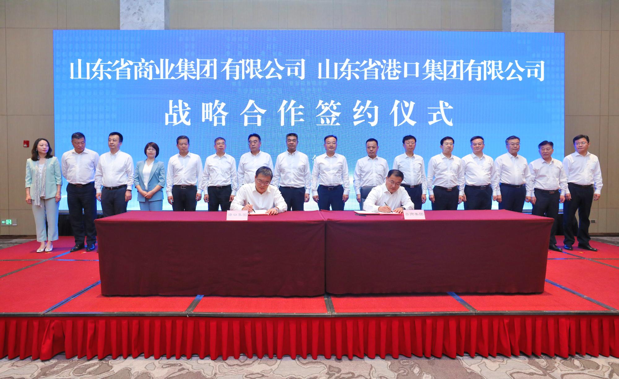 9月29日上午,山东省商业集团有限公司(以下简称鲁商集团)与山东省港口集团有限公司(以下简称山东港口)战略合作签约仪式在济南举行。山东港口党委书记、董事长霍高原,鲁商集团党委书记、董事长王绪超出席并分别致辞。