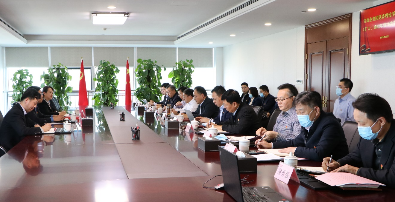 10月24日,鲁商集团召开党委理论学习中心组(扩大)2022年第10次集体学习会,深入学习党的二十大和二十届一中全会精神,传达省委常委会扩大会议精神。党委书记、董事长王绪超主持学习会并领学有关内容。3名集团党委理论学习中心组成员结合前期自学心得体会作重点发言。省国资委列席旁听工作组到会指导。