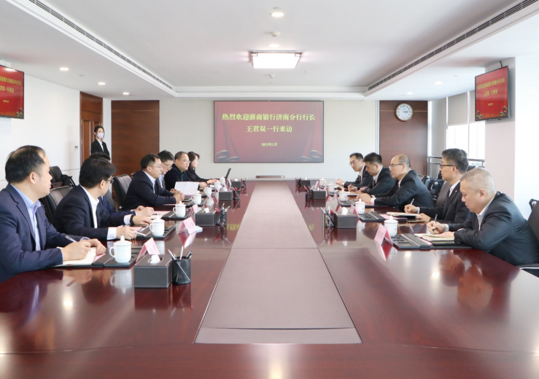 2月27日,浙商银行济南分行党委书记、行长王君双到访鲁商集团,集团党委副书记、董事、副总经理朱华建热情接待并举行座谈。