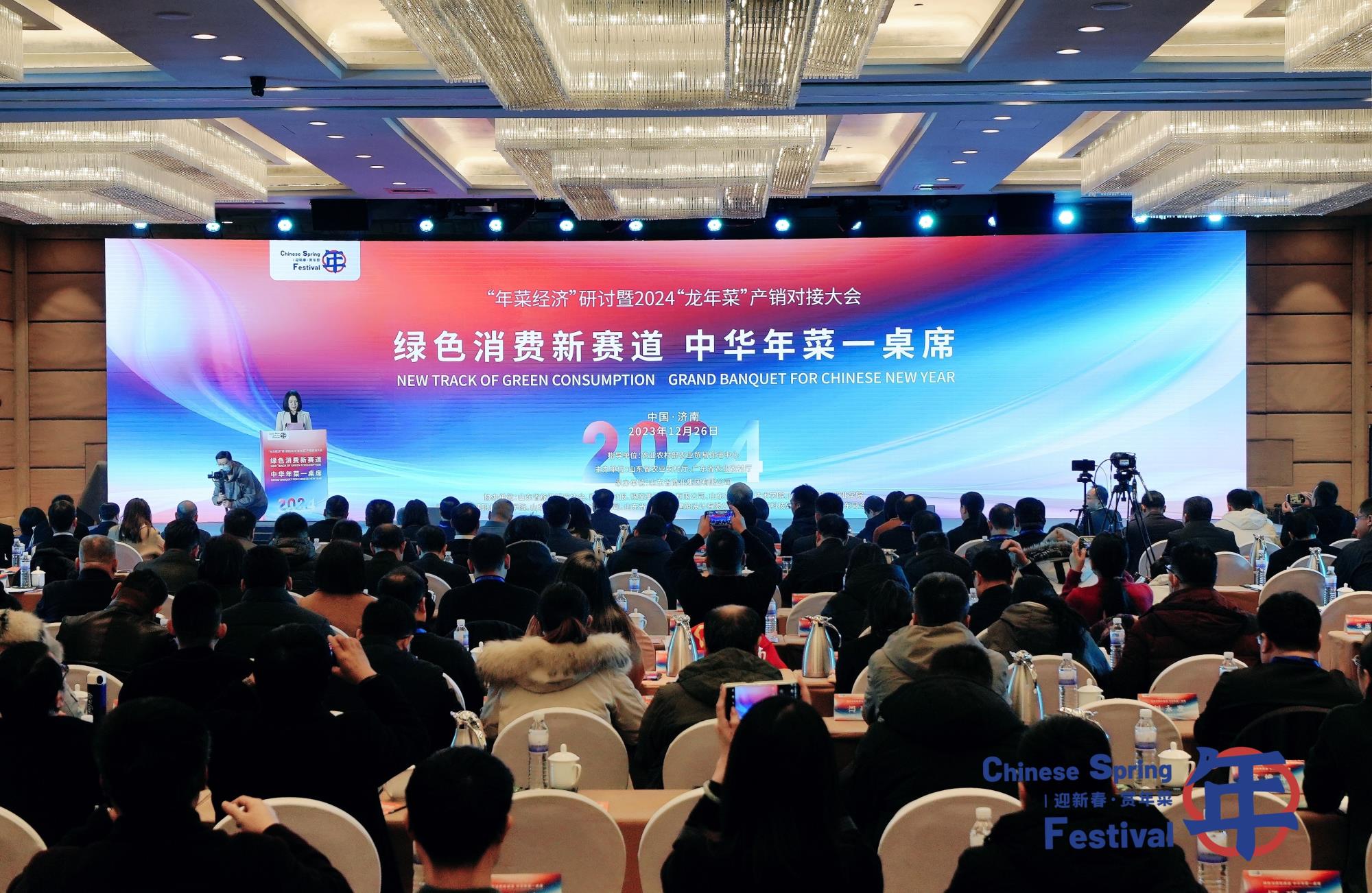 为抢抓“年菜经济”发展机遇,推进农业品牌建设,加强产销对接和市场拓展,12月26日,由农业农村部农业贸易促进中心指导,山东省农业农村厅、广东省农业农村厅联合主办,鲁商集团承办的“年菜经济”研讨暨2024“龙年菜”产销对接启动大会在泉城济南召开。大会以“绿色消费新赛道 中华年菜一桌席”为主题,串联中国八大菜系,共同研讨“年菜经济”发展新路径。