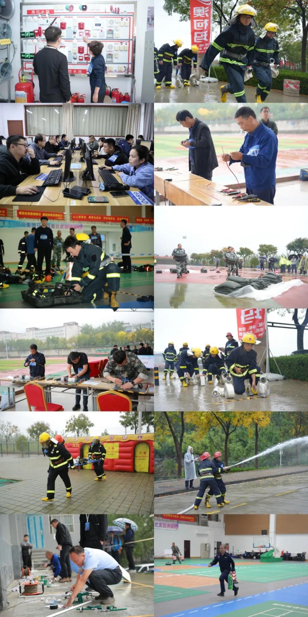 此次大赛由集团工会和安全管理部联合组织,山东商职学院承办,澳柯玛公司、福瑞达、银座电器协办。经过前期层层选拔,来自集团所属单位234支参赛队伍的322名员工齐聚赛场,展开激烈比拼。竞赛分为安全类竞赛项目和物业技能类竞赛项目两大类,共设置个人防护装备穿戴、两人水带连接、安全理论知识考核、消防器材的正确使用、火场救援、防汛沙袋码放、电源导线连接、电气配盘、PPR给水管道连接、消防主机实操等10个竞赛项目。