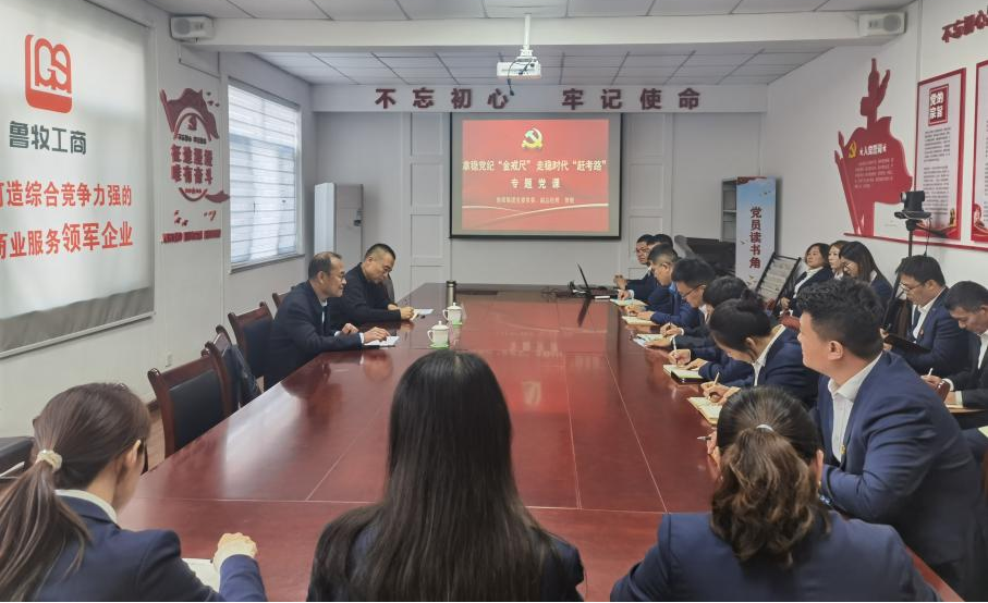 为深入学习贯彻党的二十届三中全会精神,10月29日下午,鲁商集团党委宣讲团成员,党委常委、副总经理、总法律顾问贺敬到基层党建工作联系点鲁商投资牧工商党支部宣讲党的二十届三中全会精神。鲁商投资党委书记、董事长兼总经理周雷主持会议。