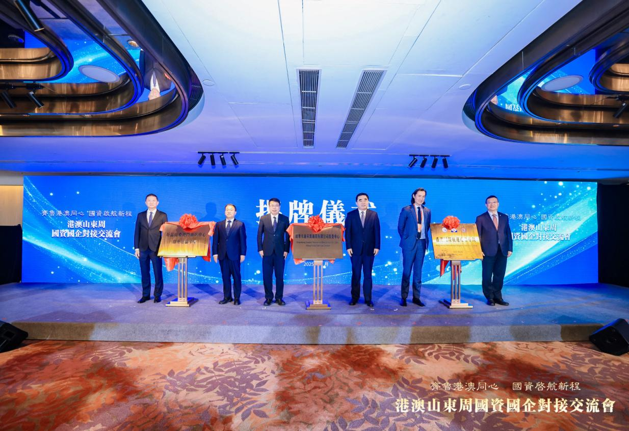 5月21日,“好品山东澳门推广中心山东选品平台”在港澳山东周国资国企对接交流会上举行揭牌仪式。山东省政协常委、澳门山东社团总会理事长陈捷,鲁商集团党委副书记、董事、总经理朱华建共同为平台揭牌。