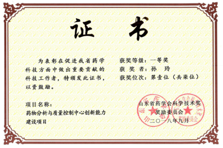 近日,山东省药学会公布了2018年度山东省药学会科学技术奖获奖名单,山东省药学科学院有5个项目获奖,其中一等奖2项,二等奖1项,三等奖2项。