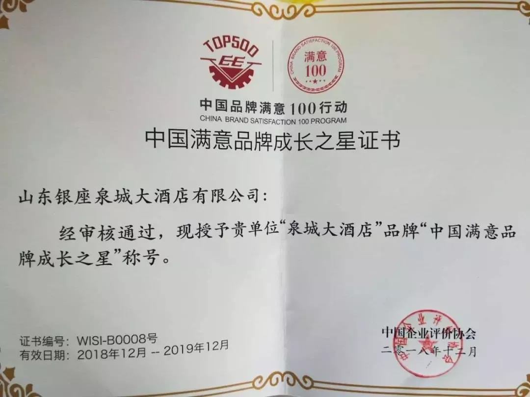 日前,首届中国满意品牌高峰论坛在北京钓鱼台国宾馆举行,32家知名企业品牌荣获“中国满意品牌”称号,银座泉城大酒店等13家企业品牌获得“中国满意品牌成长之星”称号。