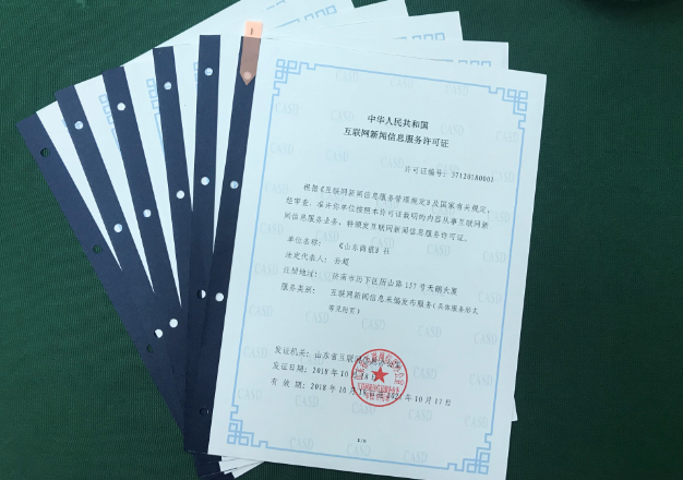 近日,山东省互联网信息办公室在济南向依法获得批准的互联网新闻信息服务单位颁发许可证,《山东商报》社网站和多个新媒体账号在列,许可证编号为:37120180001。