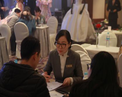这场婚礼秀,从灵感碰撞、创意策划到主题确定和细节敲定,都凝聚着佳悦人的智慧与汗水。前期,酒店团队曾就此召开6次专题会,实施“头脑风暴”,研讨氛围营造,力求从顾客的需求出发创新出彩。为保证策划顺利推进,各项工作直接落实到人,还设计“配档表”督促推进。而面对现场每一对咨询的准新人,佳悦人都会奉上无微不至的服务。