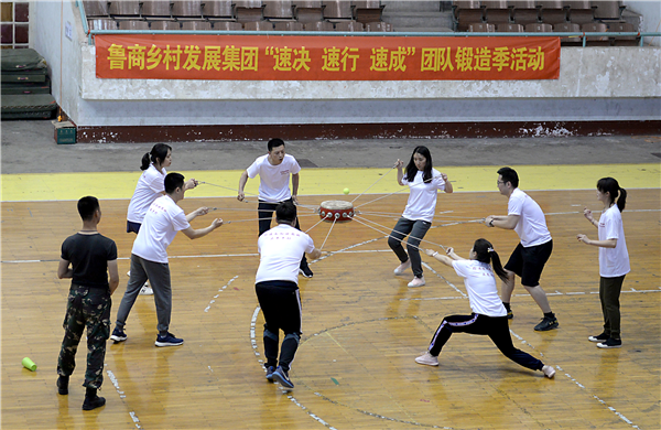 上午的拓展训练,集挑战性和趣味性于一体,员工们在训练老师的指导和鼓励下,高质量参与完成了“激情战鼓”“能量传递”“一圈到底”和“智力七巧板”等多个游戏项目。你传球,我接力,他鼓劲,大家团结协作,有条不紊,显示出良好的精神状态,在欢乐的氛围中拉近了彼此的距离,提升了团队凝聚力和执行力。在游戏中,大家一起开动脑筋,克服心理障碍,发挥自身潜能,增强了对统筹规划、精诚合作、有效沟通和相互理解重要性地认识,并用实际行动诠释了“速决、速行、速成”的企业文化。