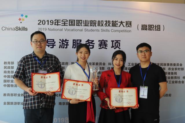 5月27日至31日,2019年全国职业院校技能大赛(高职组)导游服务赛项在南京旅游职业学院举行,青岛酒店管理职院学子高阳以全国总分第四名的成绩获得一等奖,姜雪冰获得二等奖,老师杨栋获得优秀指导教师奖。
