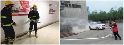 培训课程根据办公楼特点设置,严格遵守“报警员1名、扑救员4名、疏散员2名”的消防三大员配置,结合消防“四个能力”建设,重点对各楼层的安全员进行了消防报警、灭火器及消防栓的使用、疏散逃生等方面的培训。此外,为让大家更全面地掌握消防抢险技能,易通发展集团分别于4月24日和4月26日组织了两场室外消防实操演练。