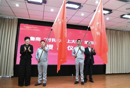 仪式上,孙立波、李华为学员代表授旗,标志着鲁商“村民进城上大学”人才振兴培训班正式启动。
