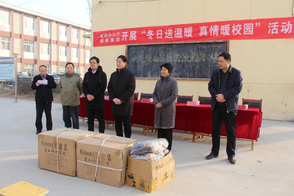 1月20日上午,由省政府办公厅和银座集团联合开展的“冬日送温暖,真情暖校园”活动,走进菏泽市曹县倪集镇倪集街道办事处第一中学,为在校学生送去了保暖手套等慰问品。省政府办公厅副主任王健,曹县县委副书记、县长梁惠民,银座集团菏泽区域总经理刘涛出席了捐赠活动。
