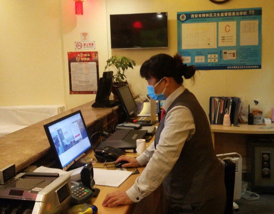 每天,戴上口罩、手套,一间房一间房仔细消毒的,是她;一丝不苟统计物资的,是她;帮着客人量体温,给大家做饭,给不能回家的客人每天每顿送餐的,是她;统计记录在家待岗员工身体状况的,也是她。崔佳,用自己的不平凡,在特殊时期坚守着看起来平凡的岗位!