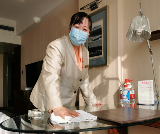 酒店为避免员工、宾客聚集增大交叉感染的风险,减少值班留守人员。在这个人人自危的时刻,曹亚平在和家人的视频通话中,面对苦口婆心的劝说,忍着眼眶里打转的泪水坚持留守。挂掉视频后,她说,“我是客房经理,本身就是管理酒店卫生清洁的,我比别人更了解酒店现在要做的清洁和消毒标准,我执行起来也更有效率,让我留下来吧”!