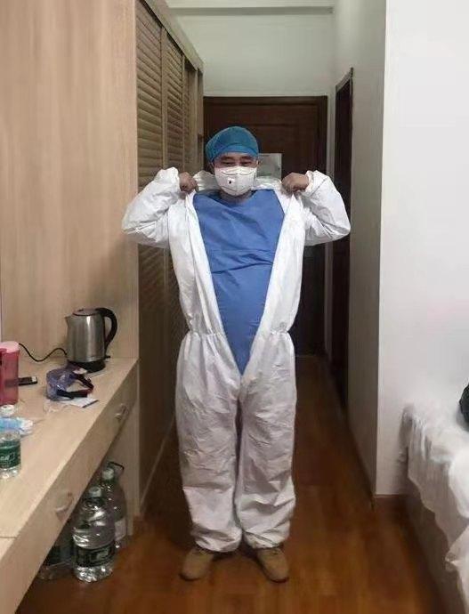 于波是齐鲁医药学院1999级医学影像专业学生,目前就职于滕州市人民医院。大年初一,刚下夜班的于波来不及休息就动身前往湖北,当天晚上抵达武汉天河机场,初二凌晨3点入住黄冈酒店。从到湖北的第一天起,于波就没有好好休息过。各种防护培训、安全考核接踵而来,各种物资的搬运整理、各类机器的调试都需要人手。时间不等人,患者病情更不容许有一刻的耽误。于波咬紧牙关,抓紧一切时间冲锋在前。