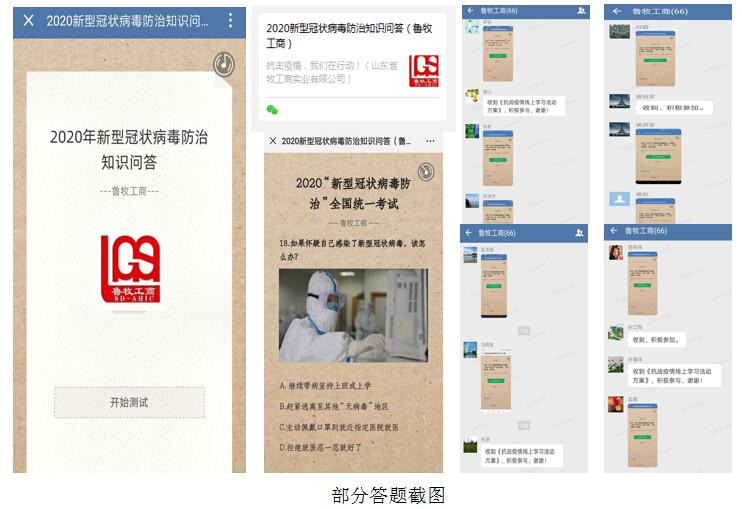 为认真贯彻落实上级关于新型冠状病毒感染肺炎疫情防控工作部署,进一步加强疫情防控工作,掌握疫情防控科学知识,保障员工身体健康和生命安全,按照省商业集团有限公司和投资公司要求,结合公司实际情况,近日,山东省牧工商实业有限公司(以下简称牧工商)组织全体员工开展“战疫情线上学习答题”活动。