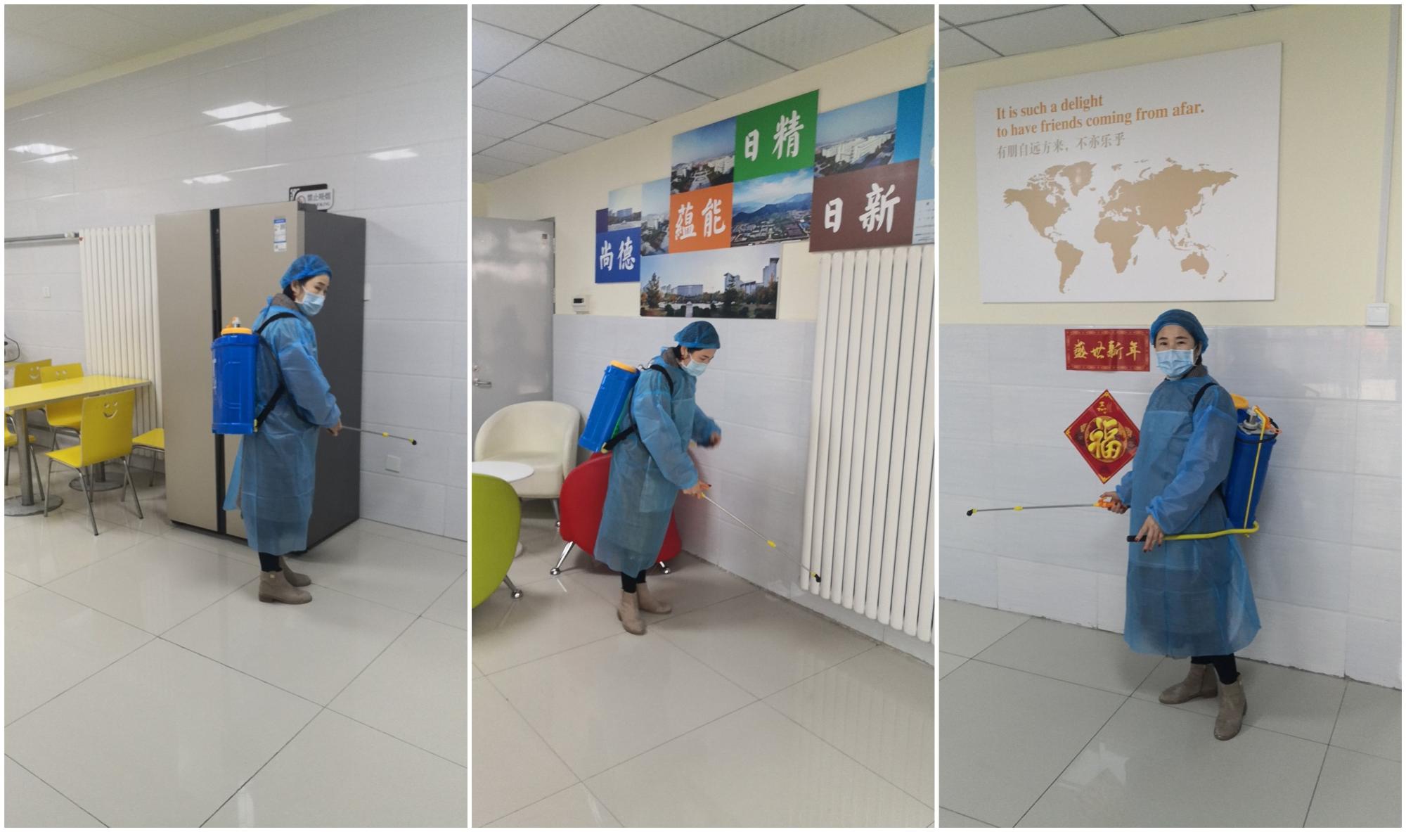 疫情就是命令。公司领导严格贯彻上级指示,精心部署,周密巡查,一线员工爱心满满,严格落实,每天定时为留学生测量体温、两次对留学生公寓、餐厅等区域进行消毒;向留学生宣传防疫知识并配发口罩等防护物品;设立5间隔离室,对疫情前外出返校的留学生进行隔离观察,切实保障了学生身体健康和生命安全。