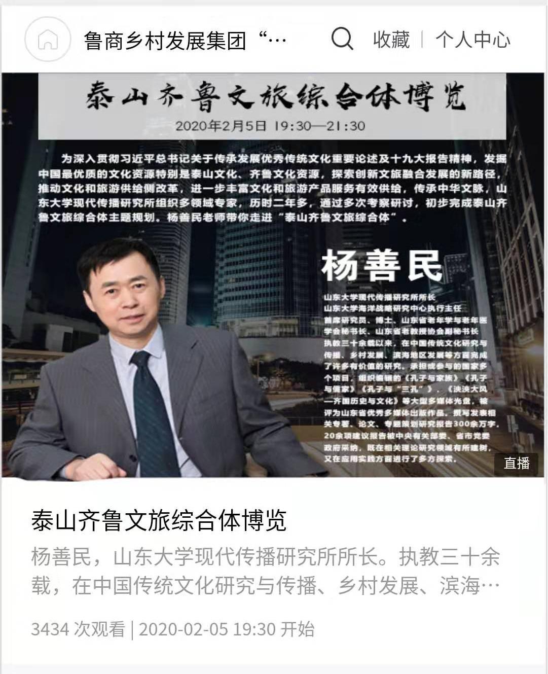整场直播,杨善民从泰山齐鲁文旅综合体的定位和目标、八大主题城、打造齐鲁文旅“双创”高地三个方面,娓娓道来,细细讲解,为学员们呈现了一场兼具深度、气度和维度的文化盛宴。