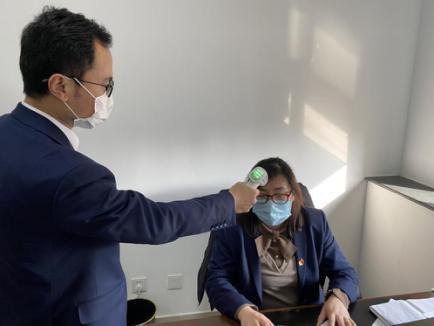 措施细致到位,执行严格认真。2月10日,复工当天所有办公人员,需出示身份证并做好登记,自觉佩戴口罩并接受体温检测。投资公司专人负责,每天上午和下午分别对员工测量体温,并详细做好记录。针对员工就餐问题,统一从餐厅订工作餐,严禁员工在外聚集用餐。