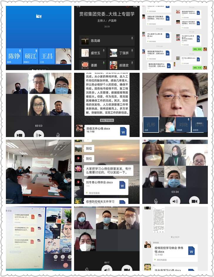各基层党组织迅速组织中层以上干部通过“学习强国”视频会议、云之家、微信等方式,开展线上“主题党日”活动。学习传达会议精神,交流分享感悟体会,并就复工注意事项进行全面部署。