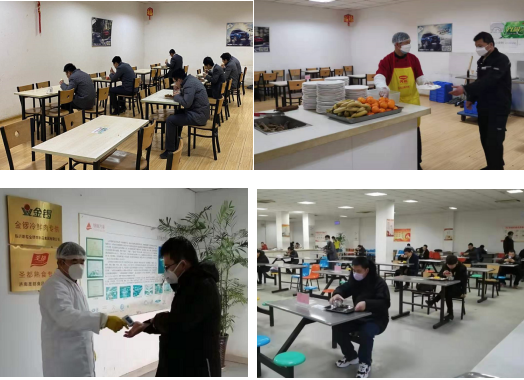 清洗后一次、使用前一次——餐具在到达员工手上之前,需要经过两次高温消毒,食堂的每名工作人员严格防护,确保员工饮食安全卫生的同时,也必须保证营养搭配。公司还出台了不允许在办公区域用餐、一人一桌、分时用餐、“速战速决”等多项措施,员工食堂处处透露着细致和严谨。