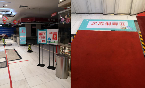 按照要求,银座济宁旗舰店统一规范了营运标识,增设了足底消毒区、电梯距离地贴一米线,有效的防护措施得到了顾客和相关政府部门一致好评。
