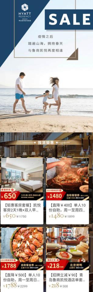“销售确实很火爆,我们推出第一个小时,自助餐券就卖出了几千份,破纪录了,完全超乎预期,除了一向受欢迎的自助餐和烤鸭外,客房加早餐的产品成为热点,提前预热了高端餐饮及住宿市场,近期我们还将在婚宴方面推出超级特惠预售,这一直是我们酒店的拳头产品。”青岛鲁商凯悦酒店营销负责人对媒体介绍说,待疫情过后酒店行业将全面复苏,重新包装特色产品、推出创新产品、挖掘新卖点、提供更个性化的服务,成为五星级酒店的经营重心。