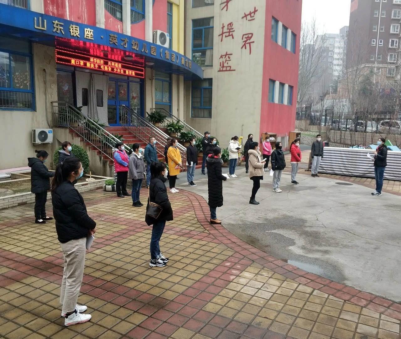 3月15日,山东银座·英才幼儿园(简称银座幼教)各分园陆续开展新冠肺炎疫情防控演练,旨在通过实战实操提高园所教职工疫情防控能力,科学应对突发情况,更加规范、有效、全面地开展疫情防控工作。演练中就教职工、幼儿入园、离园,就餐环节,紧急情况应急处置等方面进行全方位模拟,力求做到人人知流程,岗岗懂处理,用心为幼儿撑起“安全伞”。