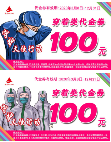 疫情蔓延,医护工作人员纷纷投身抗“疫”前线。银座泰安旗舰店为表达对奋战在一线的医务工作者的敬意,与泰安市卫健委、泰安市委网信办、泰安网联合开展“守护天使行动”,为泰安市援鄂医疗队队员每人赠送两张100元穿着类无门槛代金券,为泰安市所有医护人员赠送满500元可抵用的100元穿着类代金券。此项公益活动,受到了各界一致好评,进一步扩大了银座的影响力。