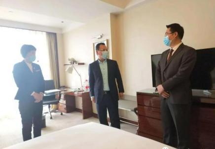 3月31日上午,省商业集团有限公司(简称鲁商集团)党委副书记兼省文旅集团总经理刘守亮来到泉城大酒店,调研疫情防控与复工复产情况。省文旅集团副总经理、山东银座旅游集团有限公司(简称银座旅游)党委书记、董事长李浩,银座旅游总经理助理、泉城大酒店总经理韩峰陪同。