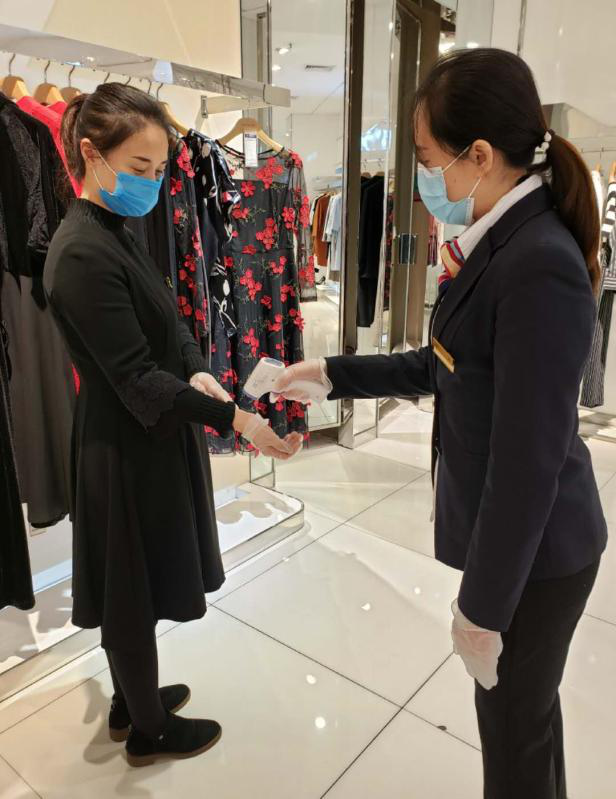 复工准备期间,她积极联系供应商,安排品牌分批次、有条不紊地进场打扫卫生。对于消杀工作,她不放过任何细节,每个品牌都要亲自检查,只要发现不合格、不规范的,责令立即整改。自复工以来,她每天都忙碌在防疫一线,积极为商场引流,拓展商场销售业绩。同时坚持在正门口引导进场顾客扫码消毒,全力以赴、负重担当。同事和老顾客们都对她竖起大拇指,连连称赞。