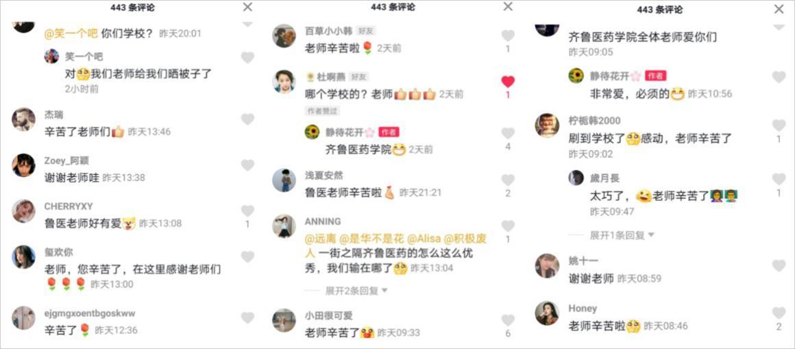 老师们的这一爱心之举,赢得学生好评如潮,“这就是我们大鲁医的辅导员”,同学们为他们亲爱的“导员”送上大大的赞。