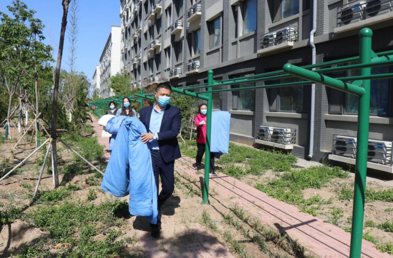 4月20日,团委学生处会同二级学院向同学们发出需求征集信息,学生通过班级群反馈需求,辅导员逐一记录。4月22日,风轻云淡,阳光正好,70余名老师楼上楼下开始忙碌,把学生被褥抱出宿舍,一件件晾晒在公共晾衣杆上。夕阳西下时,按照标识再一件一件抱回宿舍。