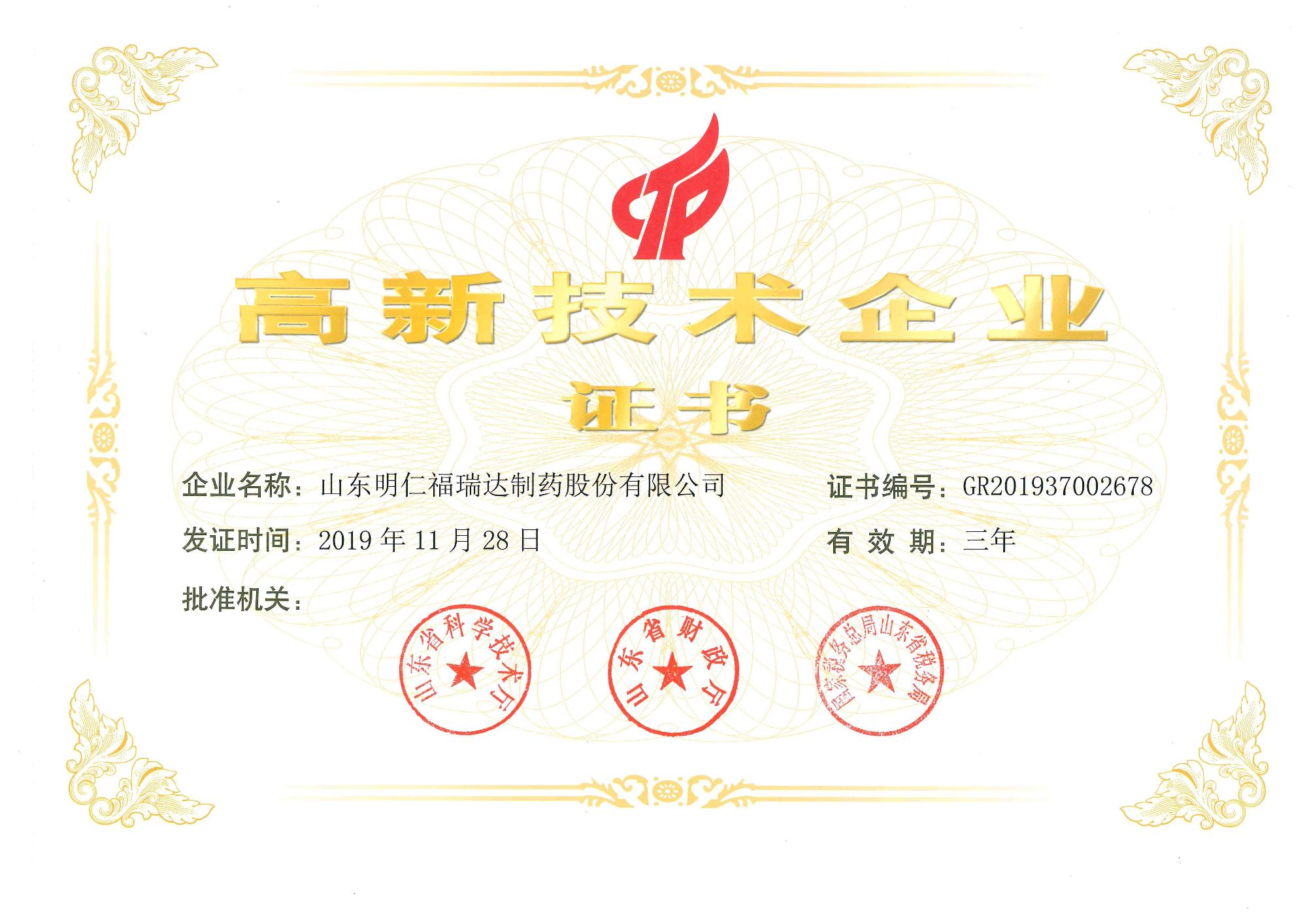 近日,国家科技部发布《关于山东省2019年第一批高新技术企业备案的复函》,山东明仁福瑞达制药股份有限公司(简称明仁福瑞达)凭借专业的研发队伍、雄厚的技术实力、持续的创新能力、科学的企业管理,再次顺利通过高新技术企业认定。这是对企业创新发展、知识产权等工作的认可和肯定。