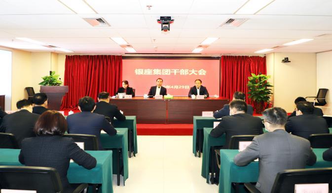 4月29日上午,银座集团组织召开公司干部大会,公布各经营单位负责人竞标选聘结果,部署近期重点工作。省商业集团有限公司首席电子商务官、银座集团党委书记布廷现出席会议并讲话。