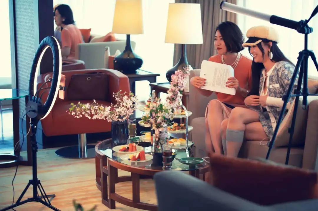 “你们的直播间太美了!”青岛鲁商凯悦酒店特意将颇受欢迎的“凯悦观海日出套房”精心布置,绽放的樱花、靓丽的美女主播以及琳琅满目的美食,完美呈现“最美直播间”。行业当红KOL的加盟让直播体验更有趣,她们讲述了青岛鲁商凯悦酒店婚礼筹划的故事,介绍酒店产品,与粉丝互动及交流,成功为酒店引流并转化带货。据统计,酒店直播在线浏览量累计近40万,预计带来婚宴销售15万元,带动了“云”上销售小高潮。