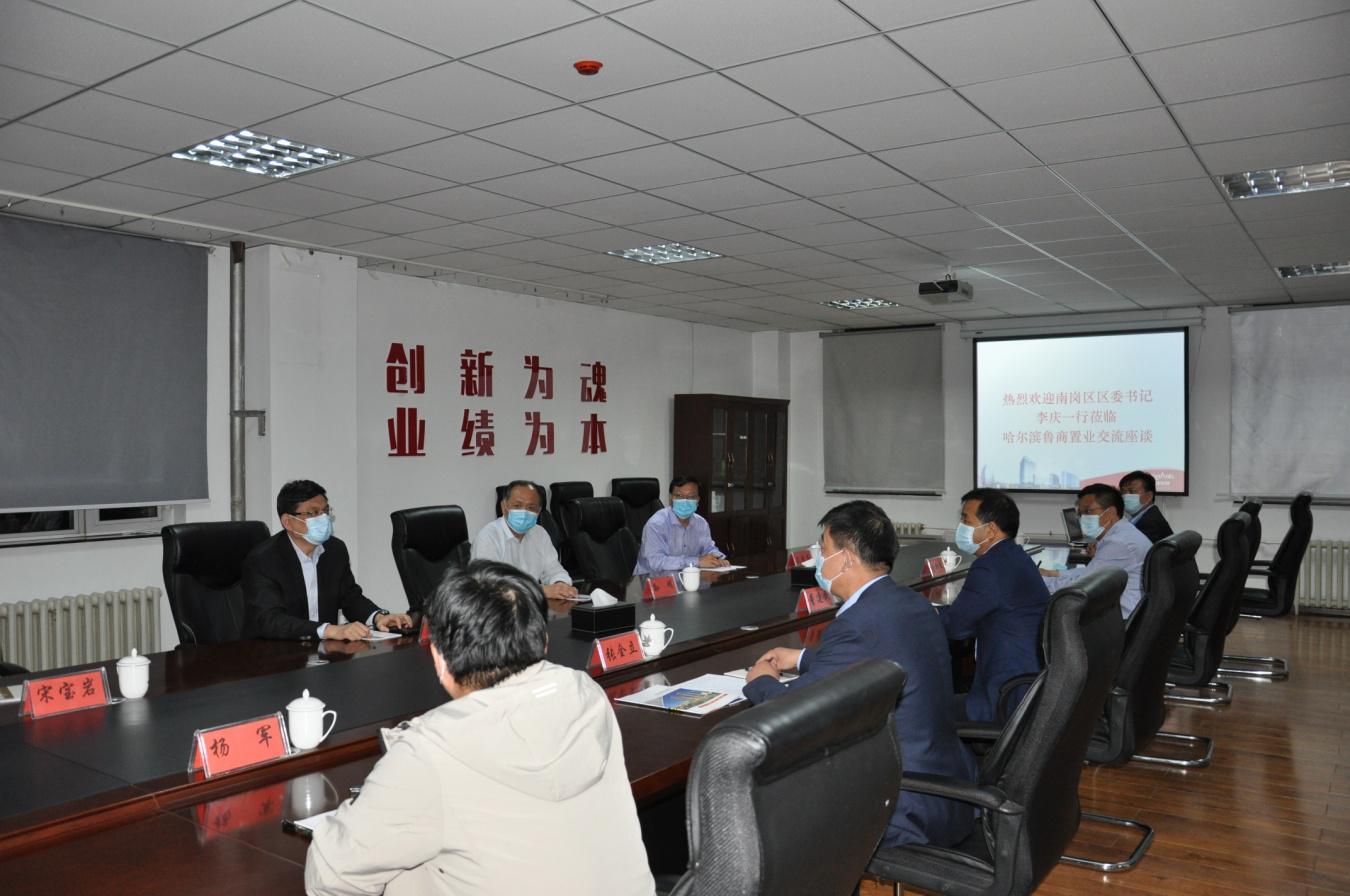 6月2日,黑龙江省哈尔滨市南岗区委书记李庆到鲁商发展哈尔滨公司调研,鲁商发展党委副书记、总经理张全立热情接待并组织座谈。南岗区副区长孙明、鲁商发展哈尔滨公司总经理董建民参加座谈。