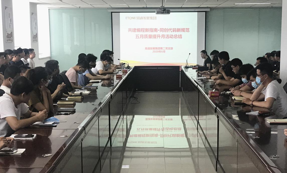 6月20日,易通召开“共建编程新指南·同创代码新规范”质量提升月主题行动中期总结会,会议采取济南主会场与上海分会场视频连线的形式进行,产品事业部全体员工参加。