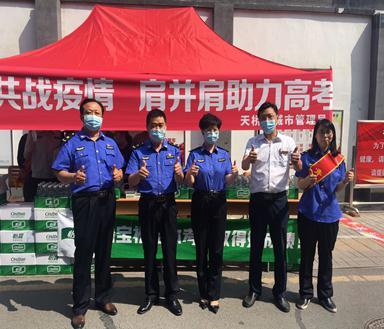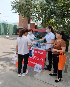淄博高青店组织员工奔赴高青一中西门口为莘莘学子爱心送水,为考生们鼓劲加油,为在烈日下焦灼等待的家长送一份清凉!