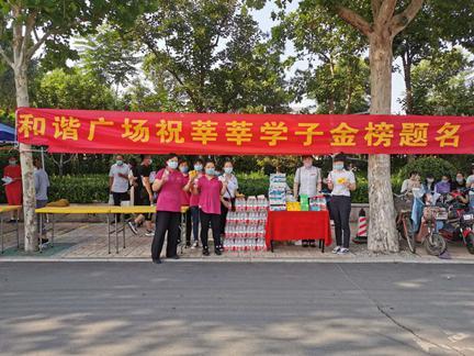 济南和谐广场在济南第九中学考点门口设立“暖心服务台”,为考生及陪考的家长们发放免费矿泉水、消毒湿巾,同时发放200张定制的暑期学生专属优惠卡,为考生们加油打气,员工们递出去的每一瓶水,都饱含着大家满满的祝福与期许。