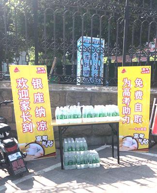 枣庄华山店在周边考点开展“爱心助考,乘风破浪”活动,设置免费矿泉水自取点,让考生和家长们在紧张的气氛中获得一丝清凉。