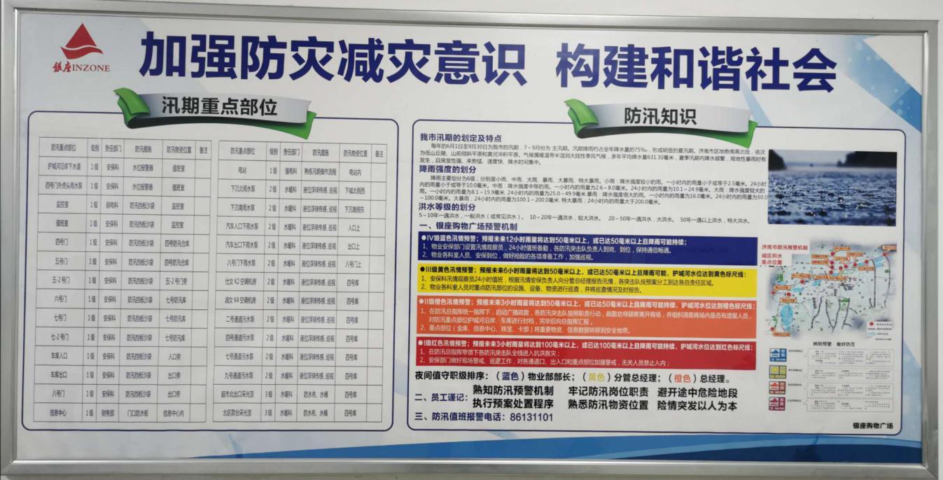 督查发现,各单位能够高度重视、落实责任,主要负责人能够提前部署、在岗带班,应急队伍、物资有准备,其中济南银座购物广场店将汛期重点部位明确级别、责任部门、防汛措施、防汛物资位置,同预警机制共同上墙公布,确保责任、措施到位。长清常春藤物业服务中心,面临市政排水官网不畅通,雨水倒灌影响,对部分车库入口提前做好防水封堵,同时加强应急队伍和防汛物资配备,并24小时值守。泰安九女峰项目对有山体滑坡风险点进行加固防护,不允许在靠近山体区域施工。