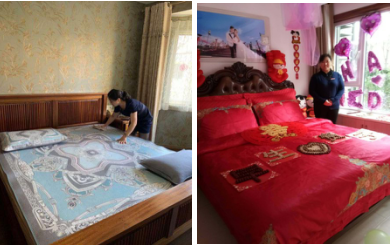 儿童家居商场富安娜品牌,受邀到顾客家中试铺牛皮席、婚庆铺床、床品洗涤等服务,为即将步入婚姻殿堂的新人送上了一份别样的祝福。