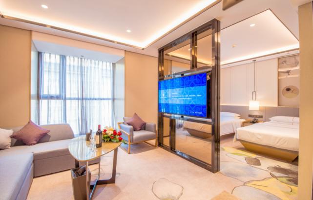 新客房突出了泉水文化元素,房间门牌、床头装饰画的泉水、荷花元素处处彰显灵动。传统与现代元素交互,尽显典雅、轻奢、时尚的风格,结合全新科技,将人脸识别、语音控制、智能感应融入其中,为宾客提供高端、舒适、智能、高效的入住体验。