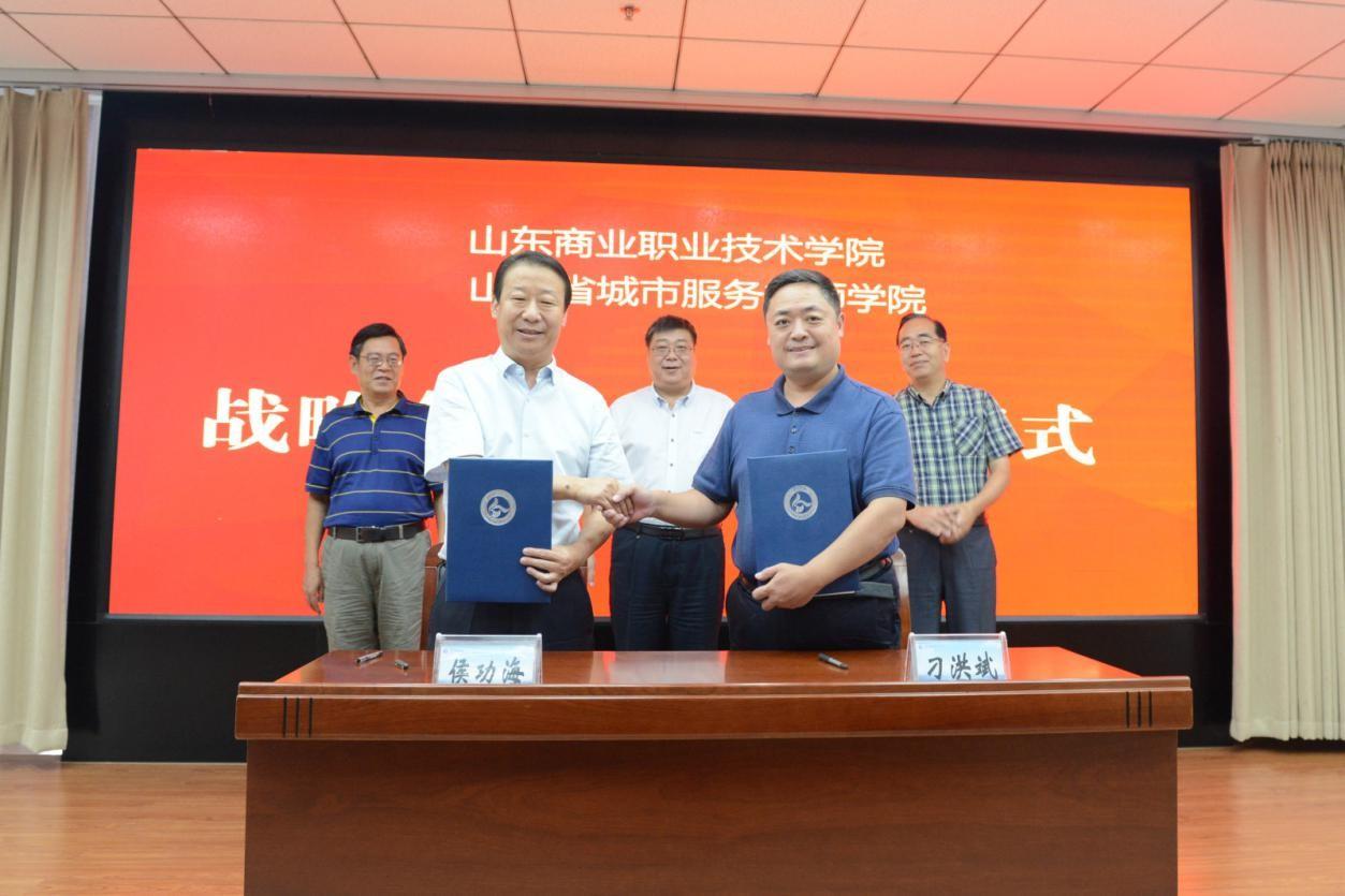 9月11日上午,省城市学院党委副书记刁洪斌和山东商院党委副书记侯功海代表双方签订战略合作协议,双方将在人才培养、师资队伍提升、社会服务能力提高、国际化合作等方面开展战略合作。