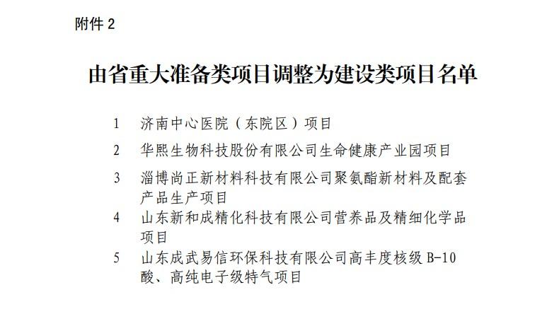 《通知》指出,根据《山东省人民政府关于下达2020年省重大项目名单的通知》(鲁政字〔2020〕23号)要求,经省政府同意,现将省重大项目调整名单印发。请各市、各部门按照省重大项目推进管理要求,加强业务指导,强化协调服务,保障增补项目支持政策落实,督促建设类项目尽早建成投用,推动准备类项目尽快开工建设。